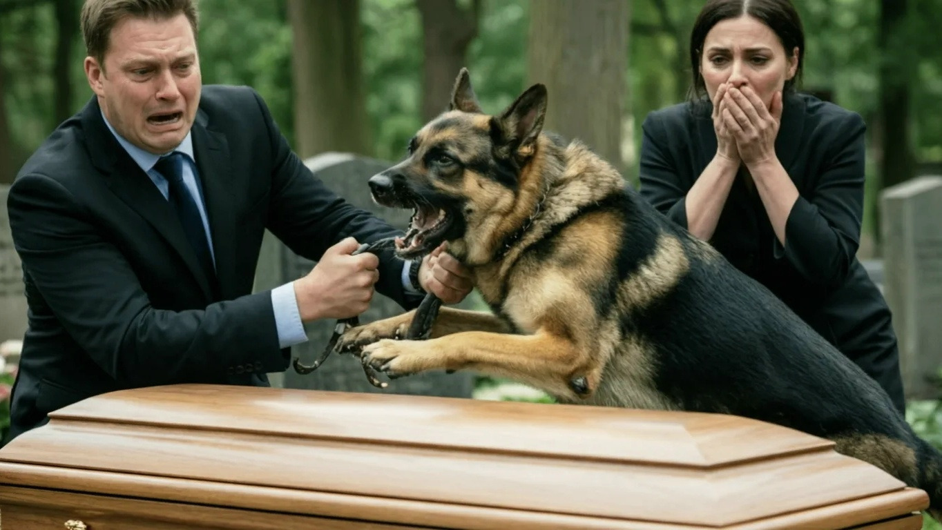 На похоронах младенца пёс начал выть и царапать гроб… когда отец открыл крышку — люди закричали от ужаса Туманный рассвет окутал Байковое кладбище в Питере. Было начало осени: листья на старых клёнах уже начали желтеть, влажный воздух впитывал в себя запах сырой земли и старых камней. Казалось, что сама природа разделяет горе семьи — ветви деревьев тихо скрипели, а туман ложился густыми клубами между памятниками. Обычно это кладбище выглядело величественным и даже мирным, но сегодня, когда сюда пришли десятки людей, оно стало местом, где каждое дыхание было пропитано болью. Собралось около пятидесяти человек. Родные, соседи, коллеги по службе Ивана, сослуживцы его из питерской полиции, близкие подруги Елены. Все они пришли проститься с шестимесячным Максимом — их первым ребёнком. Малыш ушёл слишком рано. Ещё недавно его смех наполнял квартиру Ивана и Елены, ещё недавно он протягивал к отцу маленькие руки, пытаясь ухватить его за форму, блестящие пуговицы и значок. Но судьба распорядилась иначе. Иван стоял прямо у гроба. Высокий, крепкий мужчина, старший инспектор питерский полиции, с лицом, которое обычно излучало уверенность и силу, сегодня выглядел сломленным. Его взгляд был устремлён в одну точку, в глазах стояла боль, а губы дрожали. Он держался из последних сил, но внутри его всё рвалось на части. Рядом с ним была Елена — его жена, женщина с тонкими чертами лица, одетая в строгую чёрную сукню. Она держала мужа за руку, словно боялась отпустить и упасть в омут отчаяния. Её глаза были красными от слёз, она едва стояла на ногах. У их ног лежал Гром — немецкая овчарка, верный пёс, член семьи. Ему было девять лет. Он отслужил в полиции, был напарником Ивана в десятках операций. Когда-то именно Гром спас жизнь Ивана, почуяв запах взрывчатки там, где люди ничего не заметили. Его служба закончилась после серьёзной травмы — пёс получил ранение в ногу. С тех пор он жил в доме Ивана, превратившись из боевого напарника в верного друга и защитника семьи. Особенно Гром любил маленького Максима. Он лежал у его кроватки ночами, вскакивал от каждого шороха и первым вставал, если ребёнок плакал. Даже в самые трудные моменты его умные глаза светились нежностью, когда он смотрел на малыша. Но после смерти ребёнка Гром изменился. Он перестал играть, не брал в зубы любимый мячик, отказывался от еды. Казалось, что он тоже скорбит по-своему. И вот сегодня, в этот туманный день, когда всё вокруг слилось в единый серый фон, Гром выглядел особенно встревоженным. Его уши были насторожены, нос подрагивал, а глаза всё время смотрели на белый детский гроб. Иван это заметил, но решил, что пёс просто чувствует атмосферу боли. Началась траурная церемония. Священник, отец Николай, в белом стихаре с золотыми вышивками, поднял крест и начал читать молитвы. Его голос был глубоким, немного глухим, и слова молитвы тянулись над кладбищем, вплетаясь в туман. Люди стояли молча. Женщины вытирали слёзы платками. Мужчины опускали глаза, не решаясь смотреть на родителей малыша. И вдруг в эту тишину ворвался странный звук. Сначала это было тихое скулящее подвывание. Оно вырвалось из груди Грома. Пёс прижался к земле, но его глаза не отрывались от гроба. Его уши дрожали, дыхание стало частым. Елена наклонилась к нему и попыталась погладить по голове, но Гром резко дёрнулся. Его низкое скуля