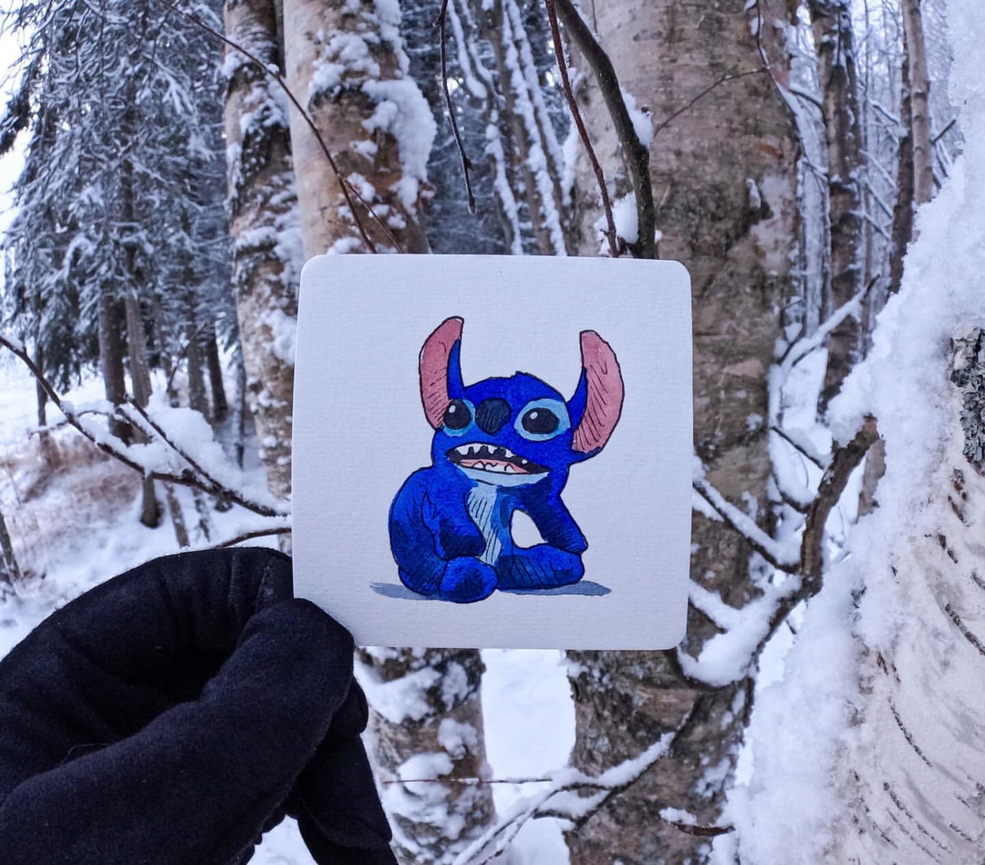 Let it snow, let it roll! ❄️ Hold and scroll to follow Stitch through a winter wonderland!