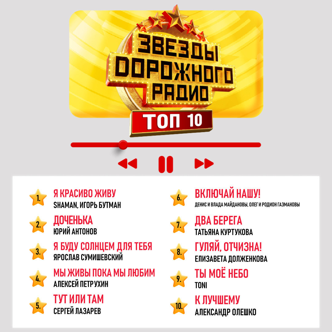 Дорогие друзья, хит-парад «Звезды Дорожного радио. ТОП 10» обновлен! 🔥 Проголосовать за любимого артиста вы можете на нашем сайте прямо сейчас 👉 dorognoe.ru