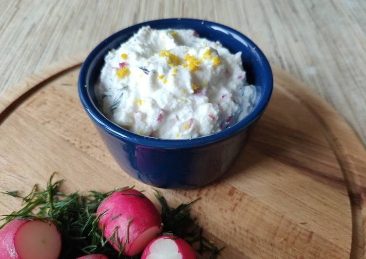 #Соуса Соус из редиса и творога Понадобится: ⭐️ Творог 9% - 200 г. ⭐️ Сливки 20% - 30-50 мл. ⭐️ Редиска - 18-20 шт. ⭐️ Чеснок - 1 зубчик ⭐️ Укроп - 1 веточка ⭐️ Цедра половины лимона ⭐️ Соль Приготовление: ✅ Творог протрите через сито. Редиску нарежьте самыми мелкими кубиками. Чеснок пропустите через пресс. Листики и тонкие веточки укропа мелко нарежьте. ✅ Смешайте подготовленные ингредиенты со сливками. Добавьте цедру. Посолите. Подавайте к теплым котлетам из смеси свиного и говяжьего фарша. Приятного апптиета, специально для вас MR.Cook ?‍?. (https://telegra.ph/file/679eb214e973c8da6cea5.jpg)
