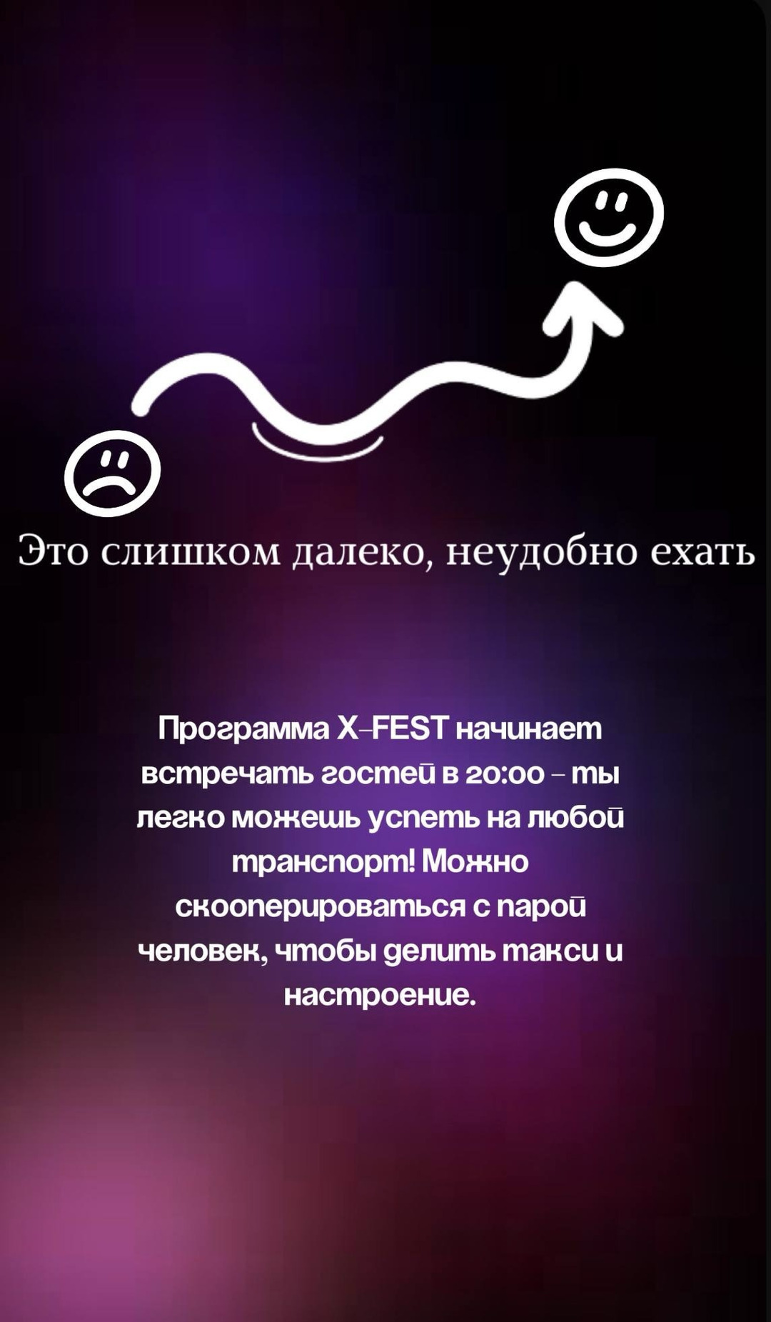 Друзья, отвечаем на главный вопрос! Поступает много вопросов «Могу ли я прийти, если давно не студент?» — да, можете! Мы приглашаем всех 18+. Мероприятие посвящено первокурсникам, но участие могут принять все, кому исполнилось 18. Атмосфера, музыка, конкурсы, фотозоны и море новых знакомств ждут каждого! Что нужно знать - Кто может прийти — любой, кому 18 лет и старше. При себе обязательно иметь документ, подтверждающий возраст (паспорт или водительское удостоверение). - Билеты и вход — выгоднее покупать заранее на сайте xfest.life. Оплата на входе возможна, но по повышенной цене. - Поведение — уважение к другим, соблюдение инструкций охраны и правил площадки. - Одежда и комфорт — одевайтесь по погоде и формату мероприятия. - Фото и отметки в соцсетях — фотозоны и моменты для сторис гарантированы, отмечайте нас. Приходите с друзьями, делитесь приглашением и готовьтесь к яркому вечеру и новым знакомствам — ждём вас! Следите за новостями: LO: https://lo.ink/e/27207 Inst: https://www.instagram.com/xfest_2025?igsh=ejgyaGdzN3hrejk5 Тгк: https://t.me/xfest2025 ВК: https://vk.com/x_fest2025 @xfest2025