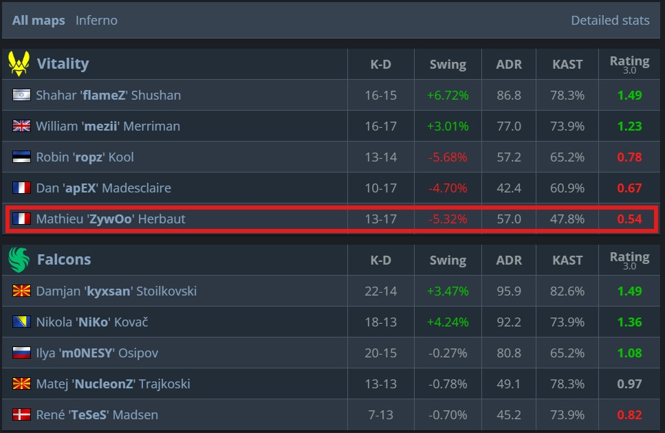 😱 Стенд-ин Falcons — 🇲🇰 NucleonZ просто уничтожил 🇫🇷 ZywOo по дуэлям (13:6).