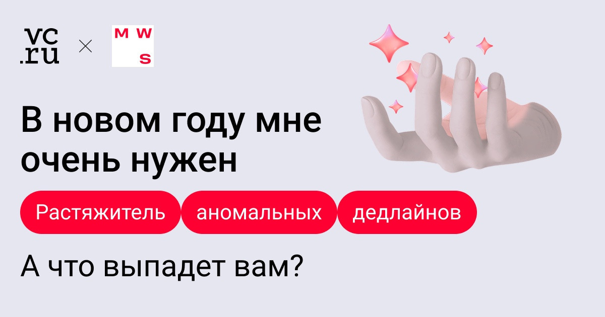 Хотели бы получить от Дедушки Мороза на Новый год растяжитель аномальных дедлайнов? ❤️ — Да 😢 — Нет Что ещё лежит в мешке? go.vc.ru/6mag?erid=2VfnxvboBJH Реклама. ООО «МВС», 16+
