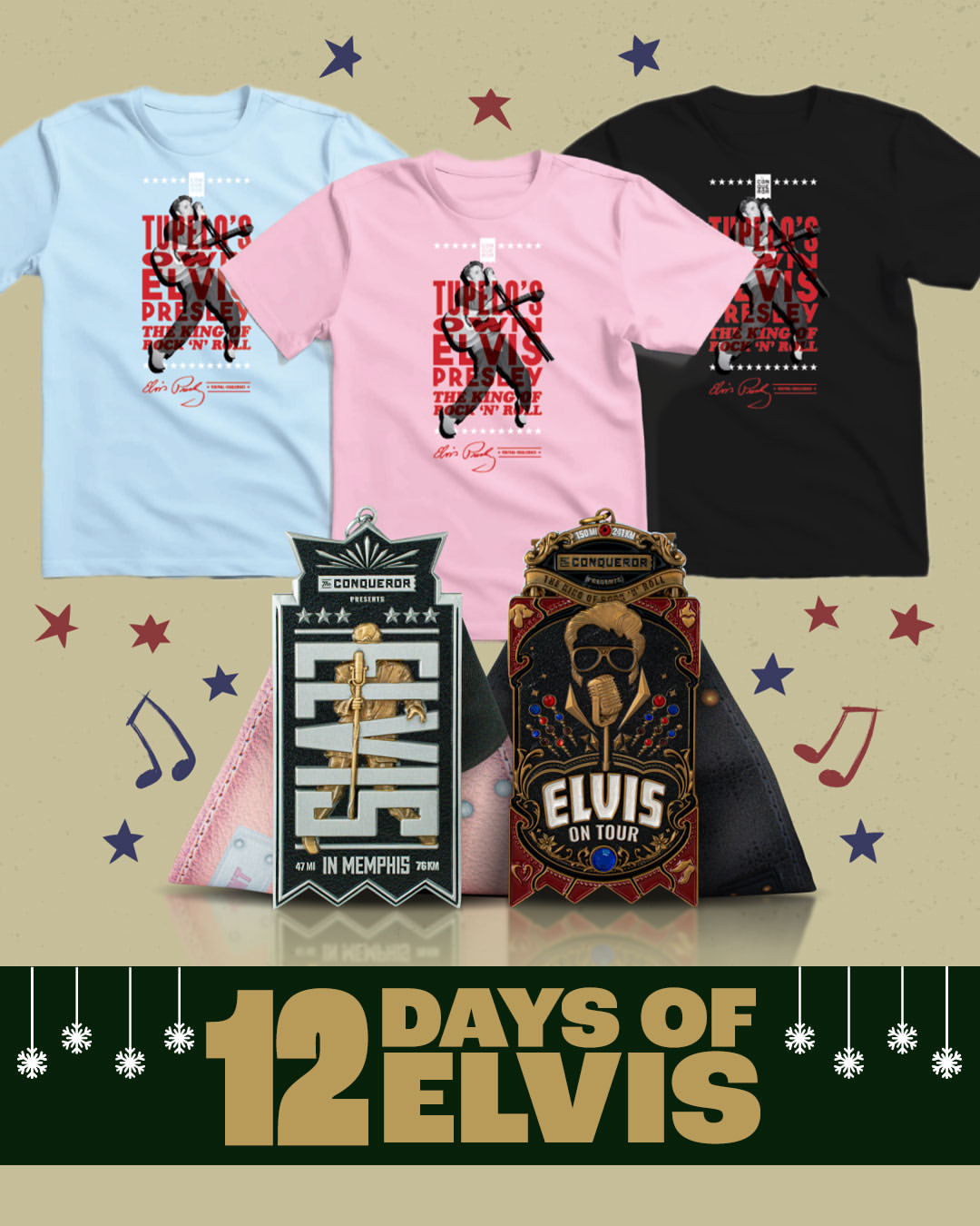 🚨GIVEAWAY CLOSED 🚨 It’s Day 10 of the ‘12 Days of Elvis’! 🎁 Today's prize: Elvis in Memphis & Elvis on Tour Fitness Challenges & Apparel from @the_conqueror_challenges Rules to Enter: 1. Like this post 2. Tag a friend in the comments 3. You must be following @elvis and @the_conqueror_challenges on Instagram More info on The Conqueror: Ever heard of a Virtual Challenge? It’s a unique experience that pushes you to reach your fitness goals at your own pace. With the two Elvis Presley Virtual Challenges, you’ll progress through the King's history and memorable performances, guided by an interactive map, and unlock exclusive in-app content, like concert videos. Complete the journey from wherever you are and earn two groovy medals with two TCB decorations and a fan-worthy apparel.⁣ ⁣ Giveaway closes at 10:59am ET on December 11th. Winners will be contacted via DM by @elvis December 11th by 2pm ET. Must live in the U.S. to win. Unlimited entries. See link in bio for full terms and conditions.
