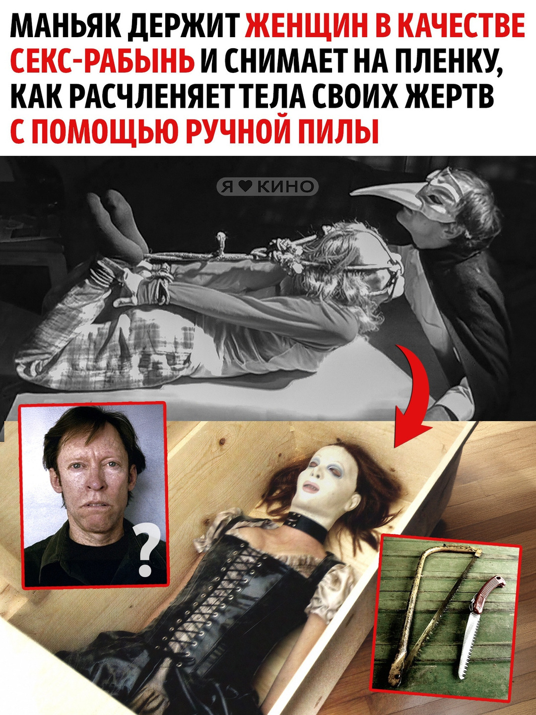 Эти пленки не должны были увидеть свет! Осторожно! Ломает человеческую психику и превращает жизнь в бесконечный кошмар Архив убийцы (2007) 💀 18+ Жанр: триллер, детектив Рейтинг: 5.9 Серийный убийца с исключительной скрупулёзностью ведёт видеозаписи своей кровавой деятельности. Правоохранительные органы находят этот видеоматериал. Более 240 часов подробных записей жестоких преступлений передаются лучшим профайлерам США, которые пытаются определить личность преступника. Однако он оказывается значительно умнее своих преследователей, не оставляя ни улик, ни отпечатков пальцев, а также изменяя свой поведенческий профиль. В главных ролях: – Стэйси Чбоски – Бен Мессмер – Саманта Робсон – Ивар Броггер – Лу Джордж Закрытая база фильмов и сериалов – vk.com/donut/kino_mania