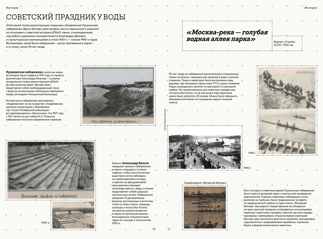 Становление центра притяжения Парка Горького — история Пушкинской набережной 〰️ Совсем недавно мы рассказывали о торжественном открытии обновленной набережной. Если вы уже успели прогуляться, то наверняка обратили внимание на павильоны с панно советской истории, стилизованными под работы художника-монументалиста Александра Дейнеки. Отсылающие к советской эпохе изображения выбраны неспроста: именно в XX веке началась история «голубой водной аллеи парка». Читайте историю набережной в бумажном издании Первой Парковой (найти ее можно в парке!) или ищите онлайн-версию по ссылке: http://clck.ru/3St6Ks 💌