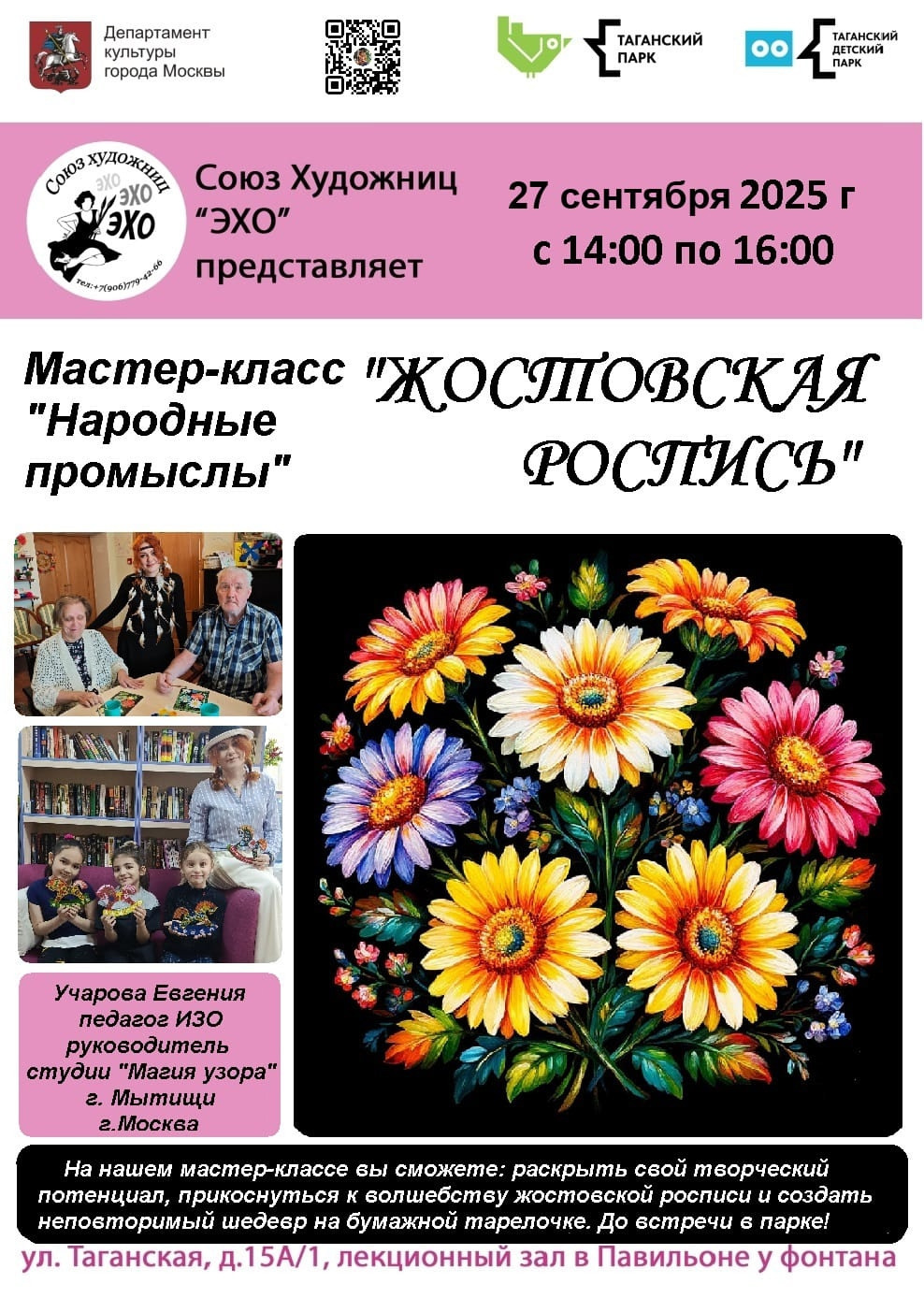 Уважаемые посетители! 27 сентября с 14:00 до 16:00 состоится мастер-класс "Жостовская роспись" от Союза художниц "Эхо" 🎨