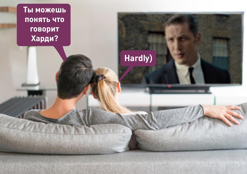 Американским зрителям труднее всего разобрать речь Тома Харди. Фирма Preply опросила 1200 зрителей из США и выяснила, что половина респондентов смотрит фильмы с субтитрами, потому что не понимает речь актёров. Самой сложной для восприятия оказалась речь Тома Харди, Софии Вергары и Арнольда Шварценеггера, а самым «невнятным» сериалом стали «Острые козырьки» http://news.lenta.ch/jnU5k