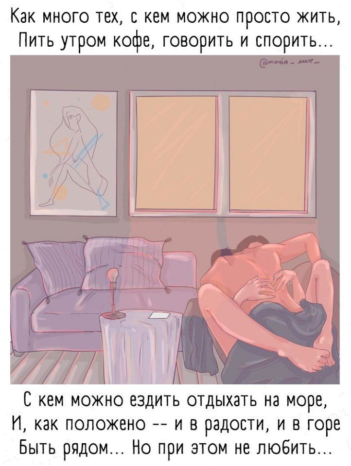 С кем мы печаль и радость пригубили. Наверное, только им благодаря Мы этот мир изменчивый любили. Как много тех, с кем можно лечь в постель, Как мало тех, с кем хочется проснуться..