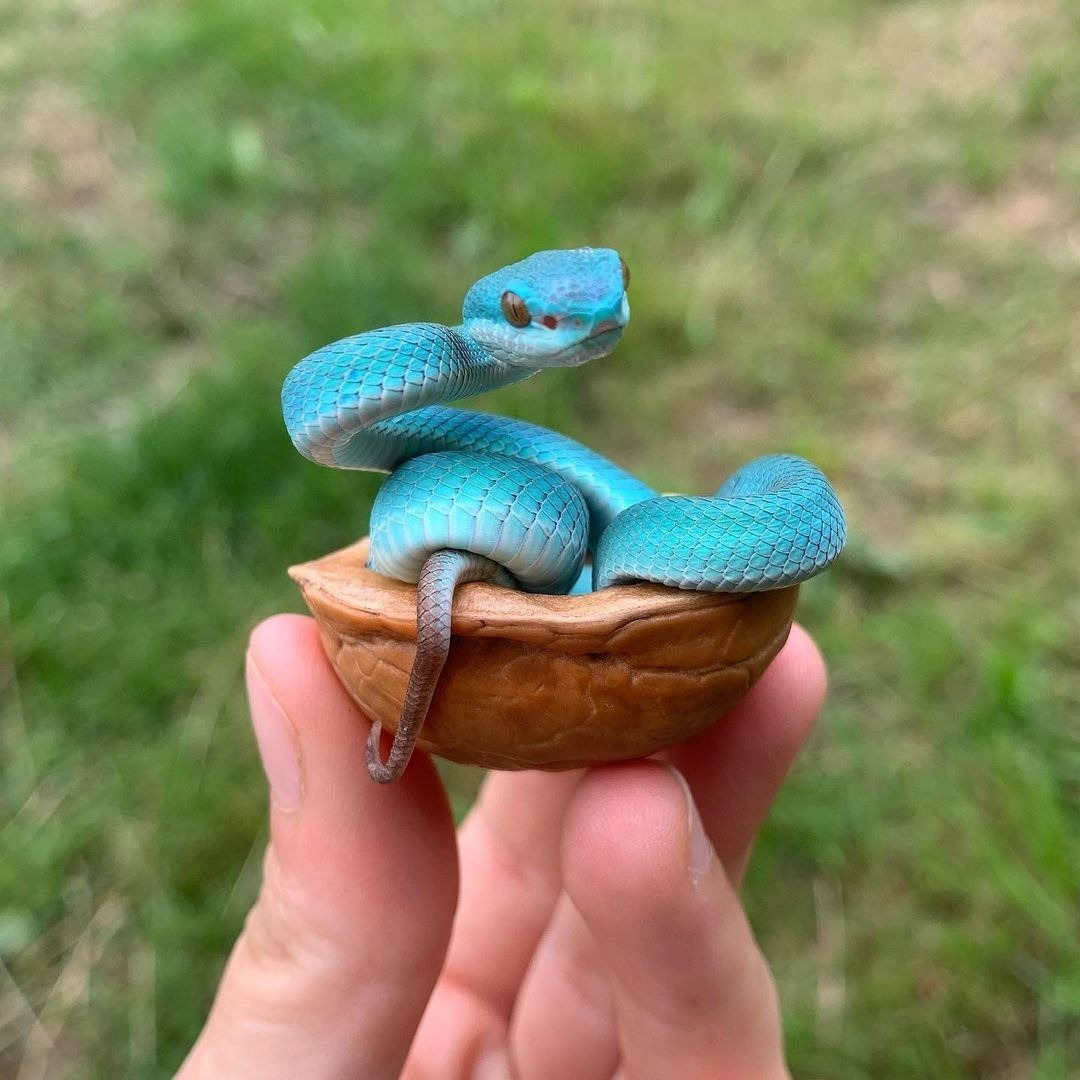 Маленькая белогубая куфия в скорлупе ореха.