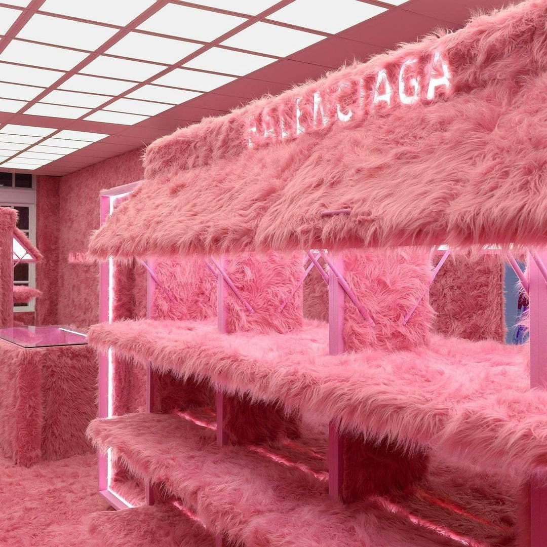Дом моды Balenciaga покрыл весь свой магазин в Лондоне розовым искусственным мехом