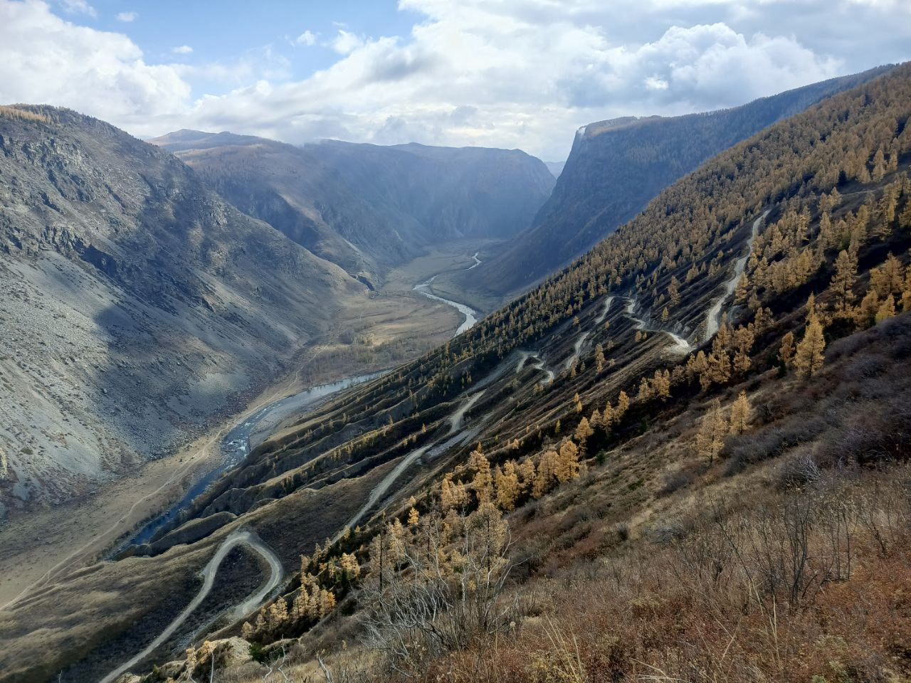 "А давай вон на ту гору?" Из архива. За Ороктойским мостом. Переночевали на берегу и с утра решили прогуляться, подъём занял почти 4 часа, спуск на полчаса быстрее. Уже излюбленное место, в дали от цивилизации, без связи, (говорят, МТС иногда ловит), доезжаем по Чемальскому тракту до Ороктойского моста, переезжаем и двигаемся в обратном направлении около 10 км, в конце пути будет маленький брод, проехать можно почти на любом автомобиле, если водитель опытный в плане проезда сложных участков. Сразу после брода, прям из воды крутой короткий подъём и дорога в сторону берега (метров 400). Места там красивые, есть песчаный берег, неподалёку есть озёра, которые появляются, когда уровень воды в Катуни падает, водичка там теплее чем в самой реке. Если прогуляться дальше по дороге то попадёте в аллею с яблонями и грушами! А ещё, рядом есть водопад, р. Каспа, чуть ниже по течению, где переезжали брод. Координаты: https://2gis.ru/geo/86.151901,51.160142