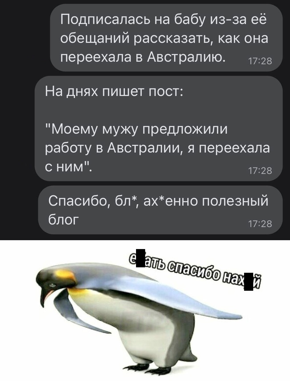 Моя девушка сошла с ума. Ей всего 30, вместе мы 7 лет. В начале отношений она была адекватной, а потом она сходила на тренинг первый, второй. Далее я стал таким хреновым, потому что я не люблю себя; потому что я работаю и несу всё в дом, а должен тратить на себя. Если я себя не полюблю, то никто меня не полюбит! Она любит себя! Ну и выкинул её из квартиры! Теперь она любит себя в коммуналке, любит себя в метро, а не в машине. Эгоистам нет места в сердце. Как говорится, не создай себе кумира. #Подслушано_странное@overhear