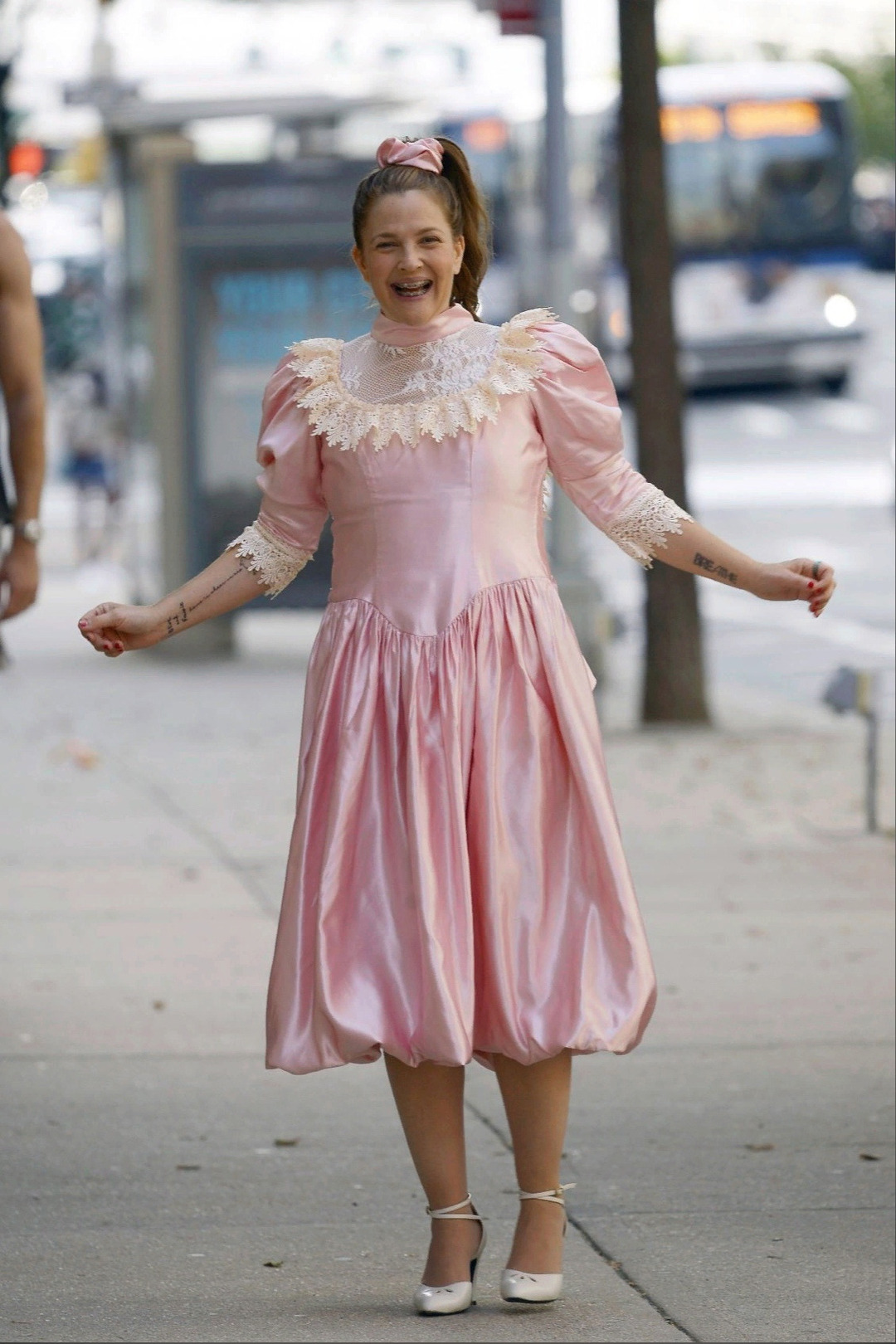 Drew Barrymore on the set in New York City