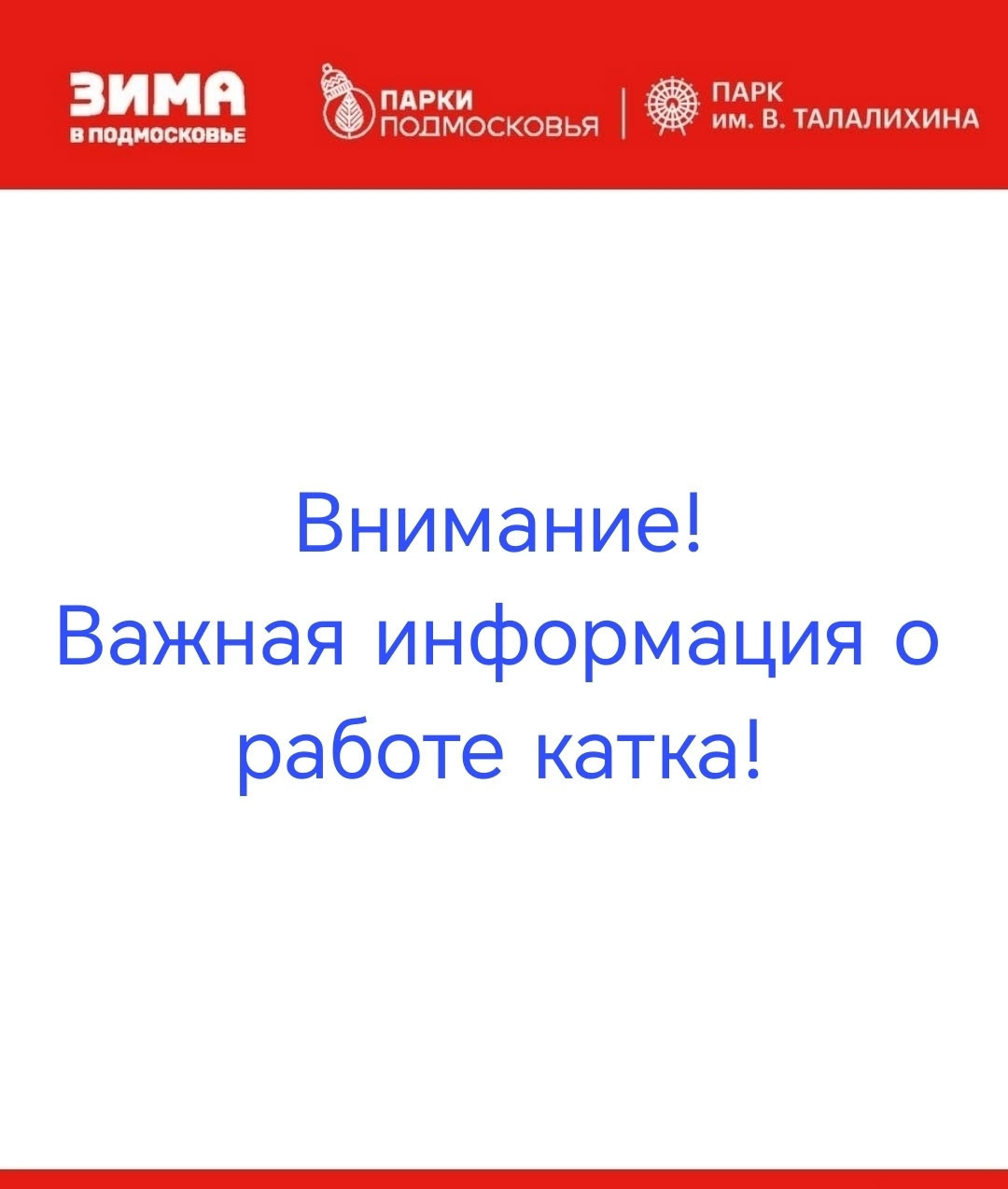 Уважаемые посетители, внимание! ⛸ ️‼ ️🚘 ⛸ ️‼️ 🚘 ⛸️ ‼️ 🚘 В связи с празднованием Крещения Господня и организации мест для традиционных крещенских купаний 18 и 19 января парковка парка будет закрыта. Также сообщаем, что 18 января последний сеанс работы катка (20:00-22:00) отменяется. Каток будет закрыт в 20:00. Приносим свои извинения за доставленные временные неудобства! 🙏 #ПаркТалалихинаПодольск #ПаркиПодмосковья #ПаркиПодольска #МинистерствоКультурыМО #КультураПодольск
