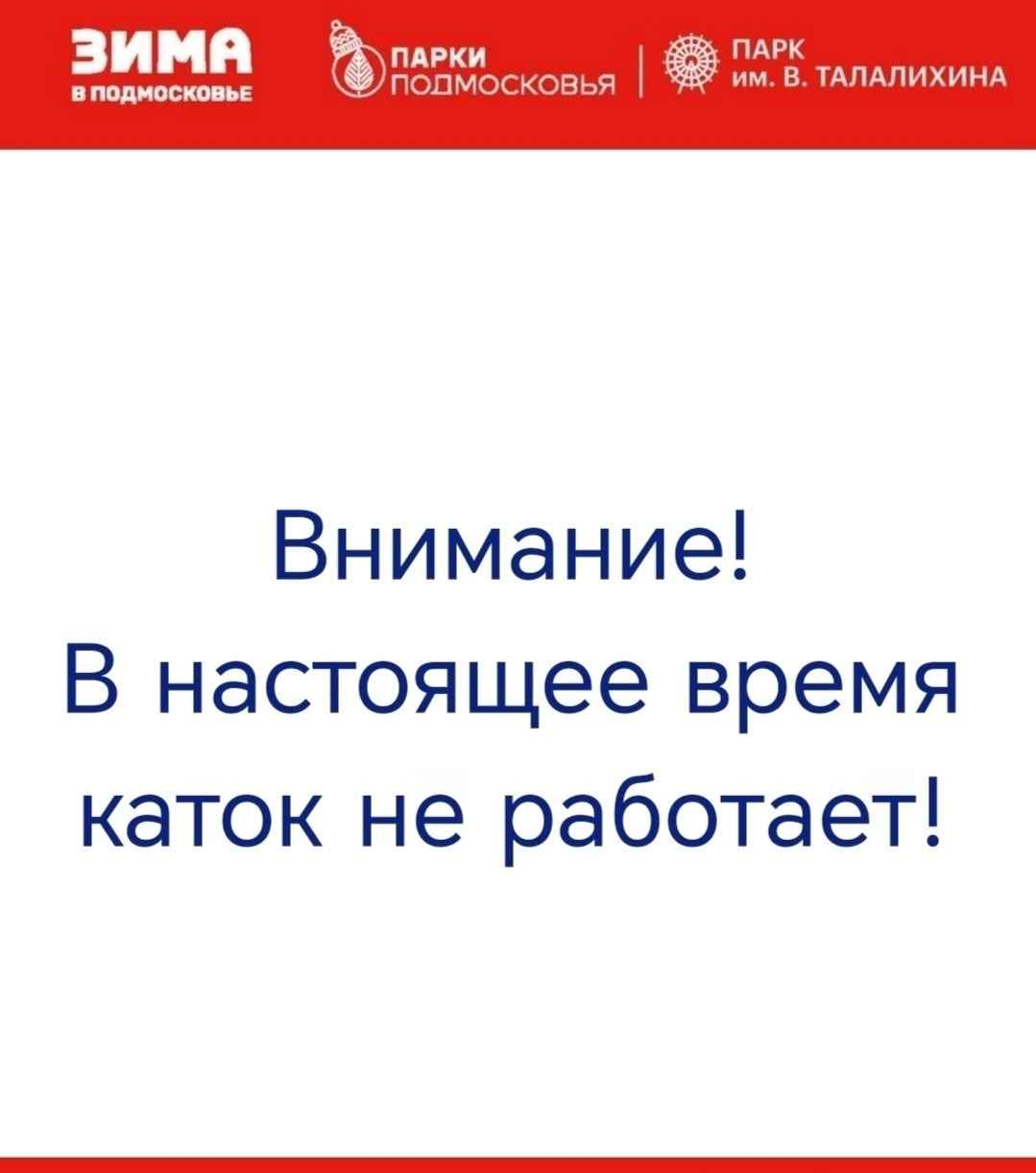 Уважаемые гости нашего парка, внимание! ☀️ ⛸️ ☀ ️ ⛸️ ☀️ В связи с наступлением весенней поры и соответствующими изменениями погодных условий каток ЗАВЕРШИЛ свою работу в этом сезоне. Напоминаем, что в нашей группе ВК есть альбом https://vk.ru/album-71285713_311792176, где вы можете поделиться своими фотовоспоминаниями о времяпровождении на коньках. Загрузка доступна всем подписчикам сообщества. До встречи в следующем сезоне! 🩵 #ПаркТалалихинаПодольск #ПаркиПодмосковья #ПаркиПодольска #МинистерствоКультурыМО #КультураПодольск
