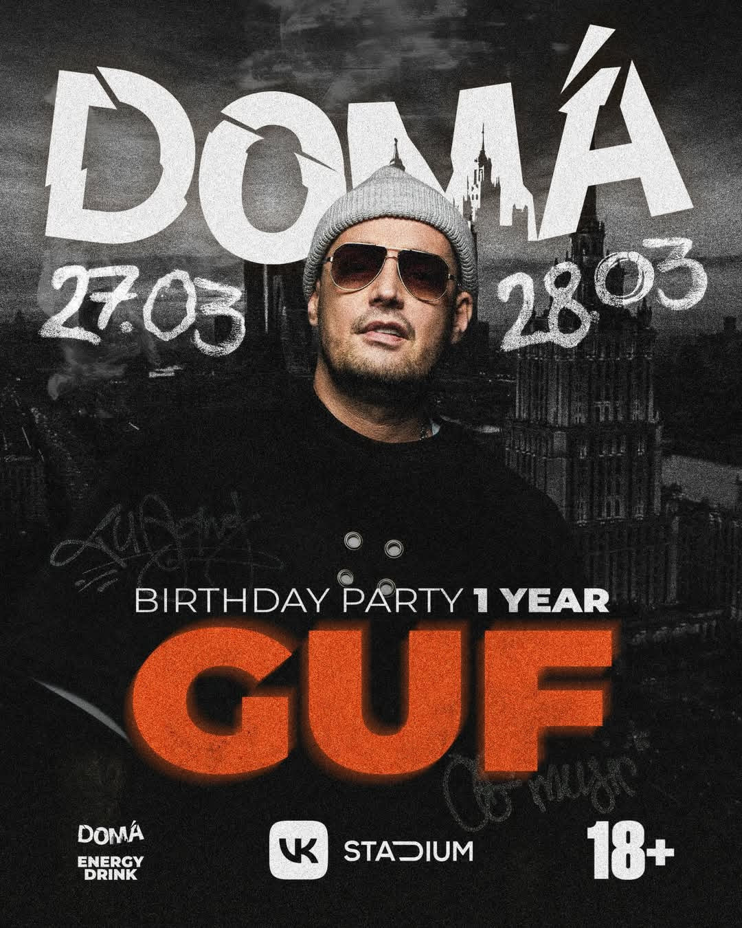 GUF — хэдлайнер фестиваля DOMA 1 year 27 и 28 марта — главные даты этой весны. Два дня, сильные лайнапы и артисты, которых вы точно ждали. Совсем скоро откроем нового артиста — следите за анонсами. А пока советуем успеть приобрести билеты по старой цене — ссылка в шапке профиля 🔥